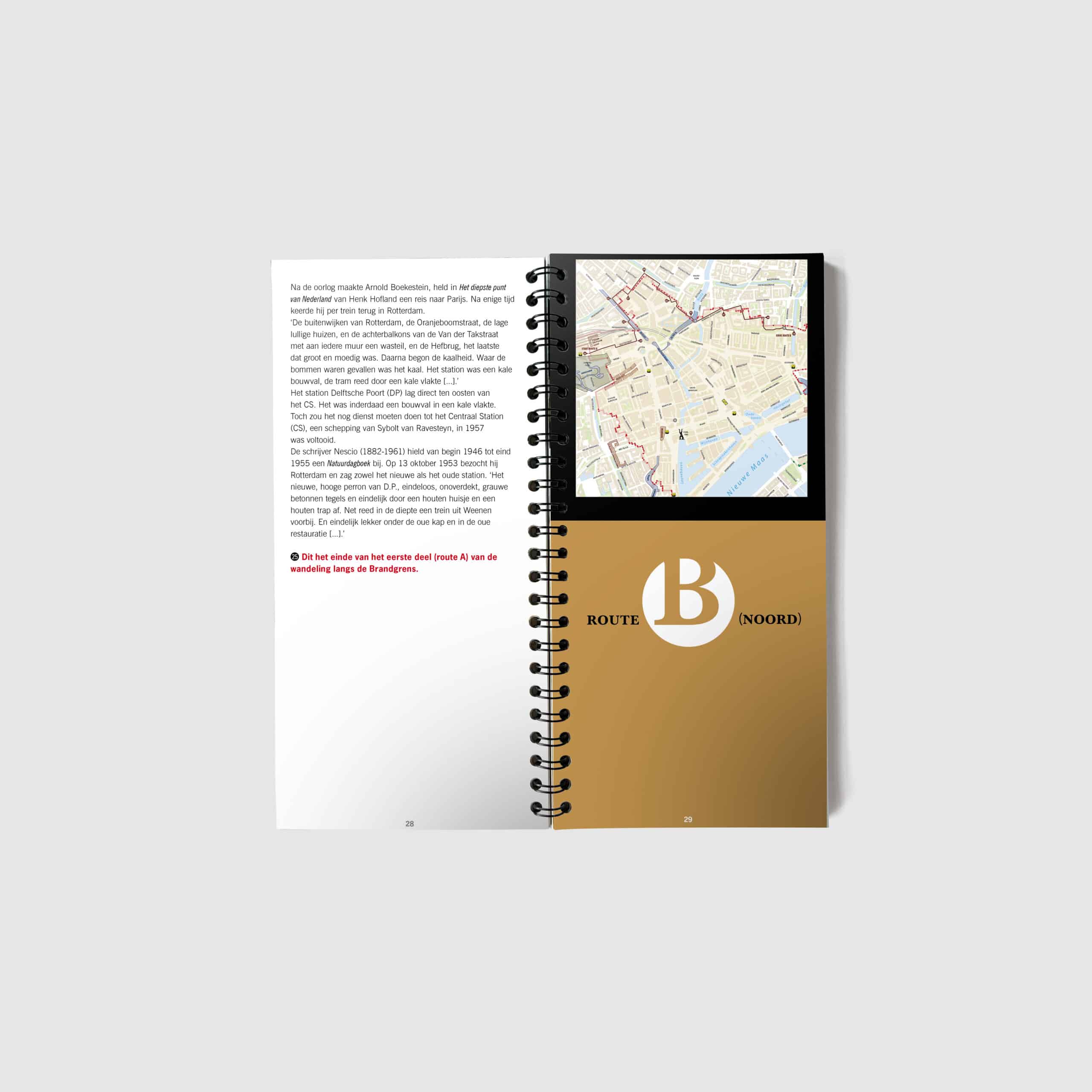 De Brandgrensroute is tevens een wandeling langs de ‘rooilijn’ waarbinnen de nieuwe stad werd opgebouwd, een wandeling langs de lijn tussen het heden en het verleden van Rotterdam.